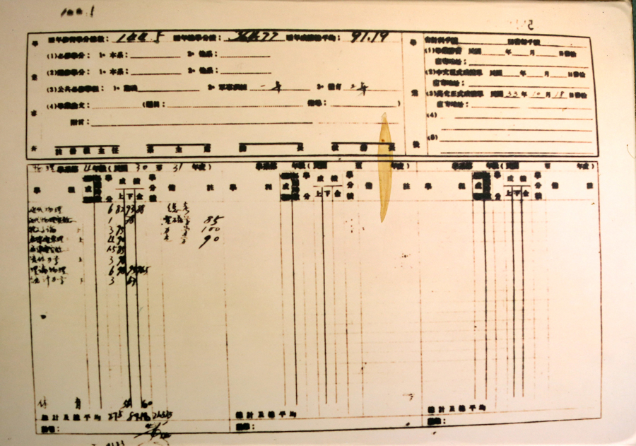 杨振宁在20世纪30-40年代的准考证和成绩单